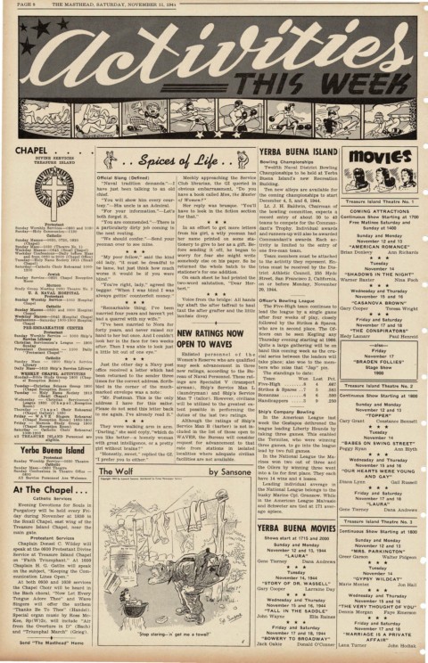 PAGES THE MASTHEAD, SATURDAY, NOVEMBER 11, 1944