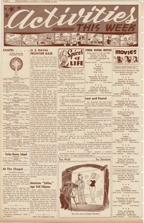 PAGES THE MASTHEAD, SATURDAY, NOVEMBER 18, 1944