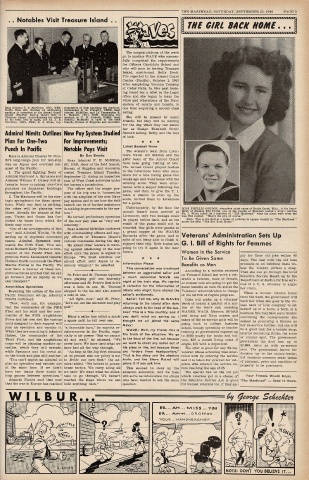 Pacific Command set-up, Admiral a hole in one. sailor's sentiments. of the GI Bill of Rights program. from the wars, the government will