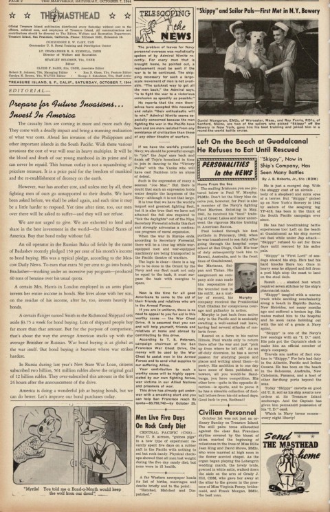 to bond buying. His was a typical pledge, according to the Mos- the Pacific theatre of warfare. · Hawaii, Australia, and to the front dogs aboard his ship. He's had his