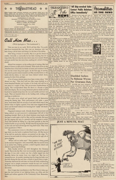 PAGE2 THE MASTHEAD, SATURDAY, OCTOBER 21, 1944 ---------------------------------------