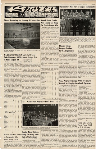 ing, the Treasure Island Tars get their swimming gear out of the work.